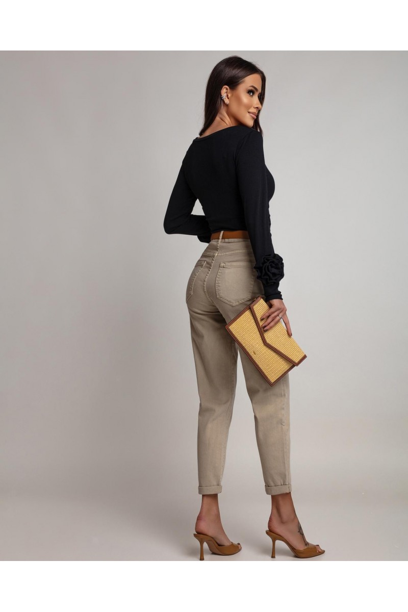 Ponadczasowa czerń sprawia, że bluzka pasuje dosłownie do wszystkiego – od jasnych jeansów (jak na zdjęciu), po eleganckie, szerokie spodnie w kant.