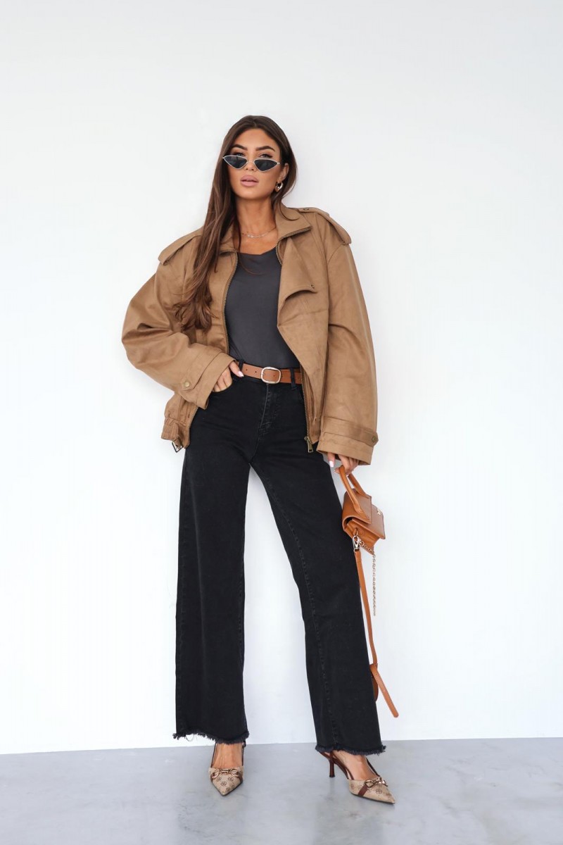 Stylowe detale – ozdobne pagony na ramionach oraz szeroki, wykładany kołnierz nawiązują do klasycznego stylu militarnego i elegancji trencza. Materiał imitujący zamsz jest niezwykle miękki w dotyku, a jednocześnie wytrzymały i odporny na zagniecenia.