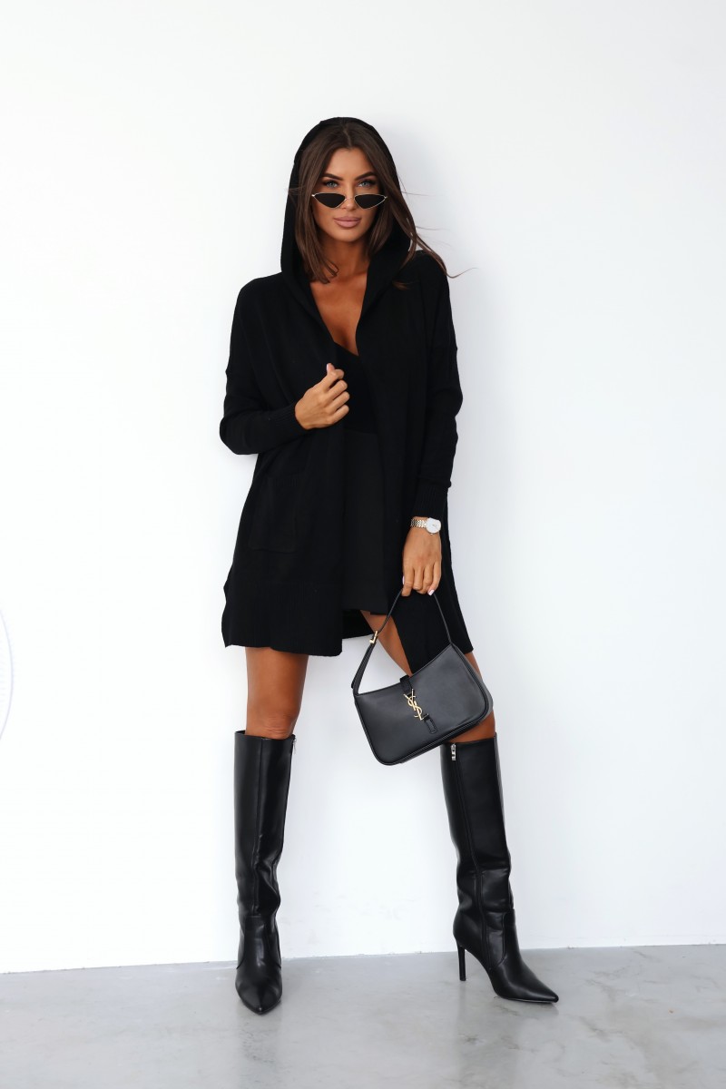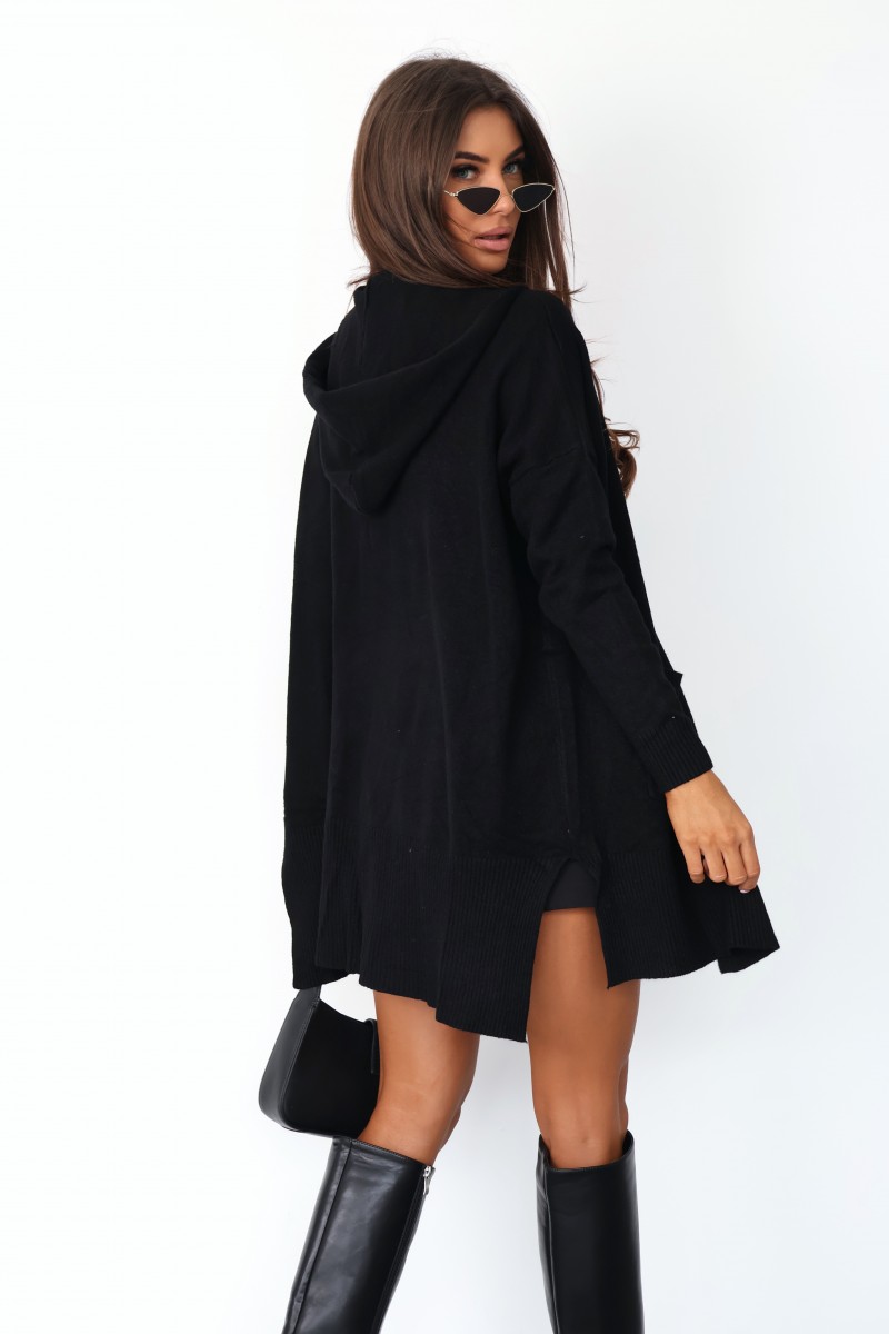 Niezapinany krój o długości do połowy uda nadaje sylwetce lekkości i swobody. Dwie duże, naszyte kieszenie z przodu pozwalają na wygodne schowanie dłoni lub drobiazgów. Długie rękawy oraz dół swetra zakończone są estetycznymi ściągaczami, które zapobiegają rozciąganiu się materiału.